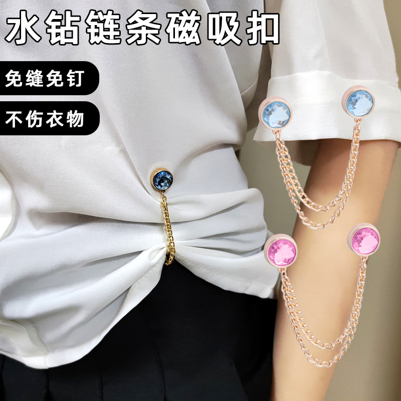 ドリルチェーンの磁気ボタンのズボンの裾の長さを短くして固定します。