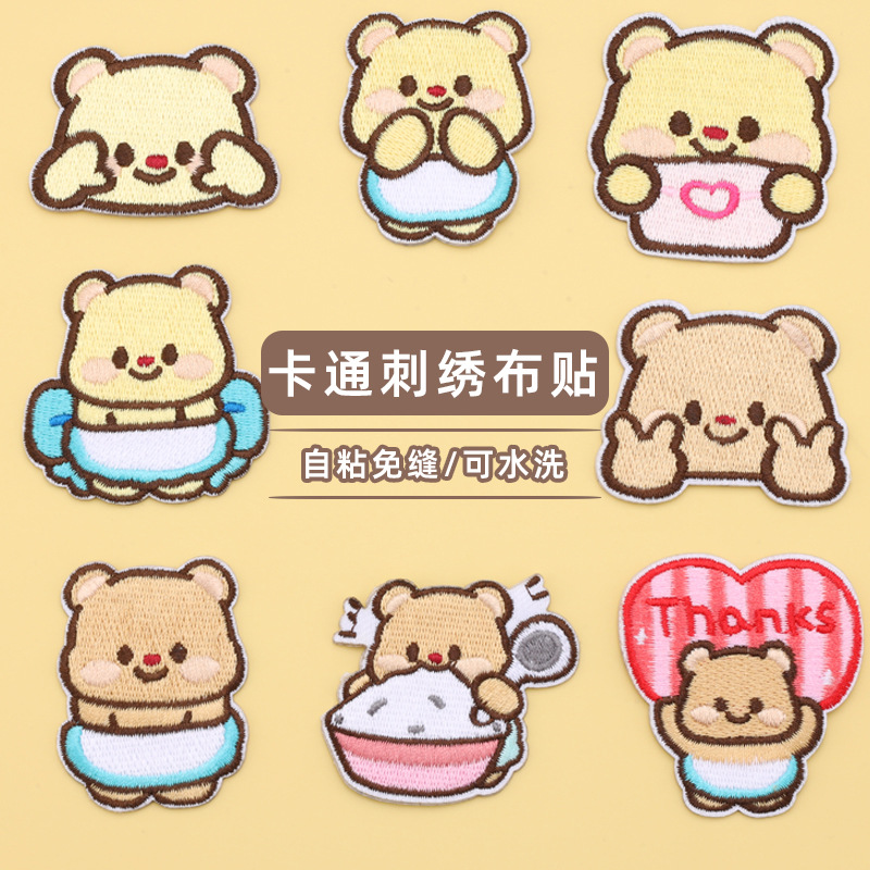 かわいいアニメ動物刺繍布貼りdiy手帳バッグ自己貼り布ダウンジャケット
