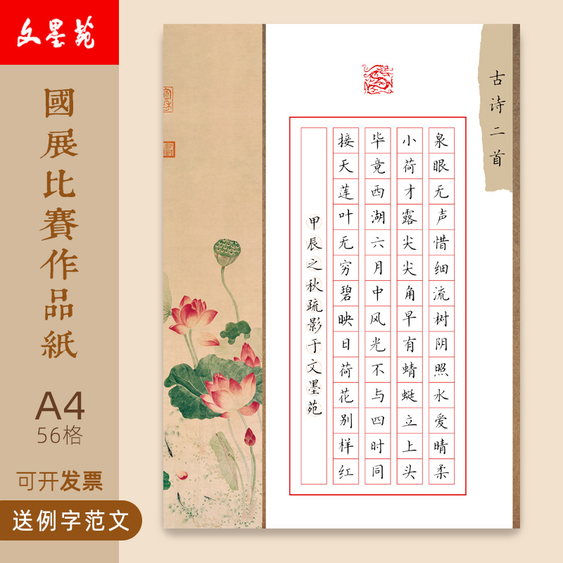 A4 硬筆書道作品用紙 アンティーク風 56グリッド 小池蓮 古詩テンプレート 小学生向け全国展コンクール