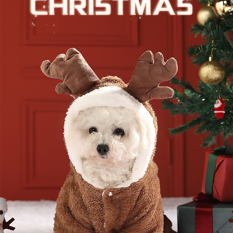 クリスマスペット服、ヘラジカスタイルの暖かい猫と犬の四本足服、中小型犬の秋冬の抜け毛防止服