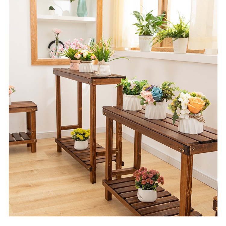 床置き無垢材二層フラワーシェルフ屋内リビングルーム防錆木材屋外多肉植物植木鉢ラックバルコニー収納ラック