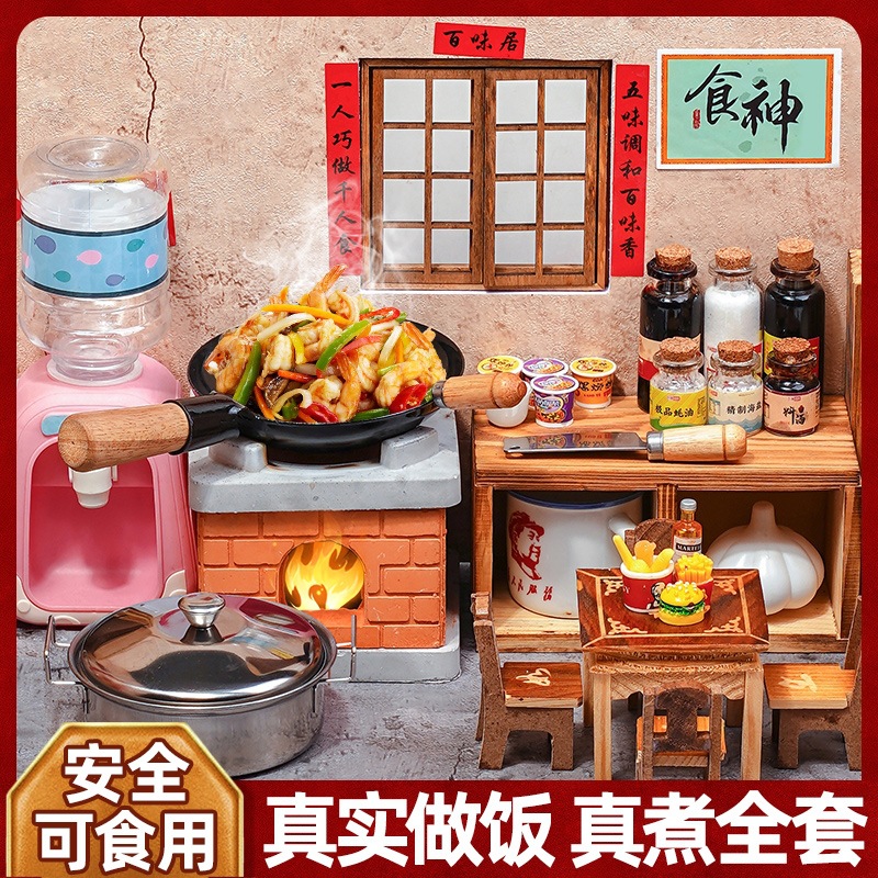 ミニキッチンリアルクッキング調理器具フルセットインターネット有名人リアルバージョンクッキングセット子供女の子おもちゃ