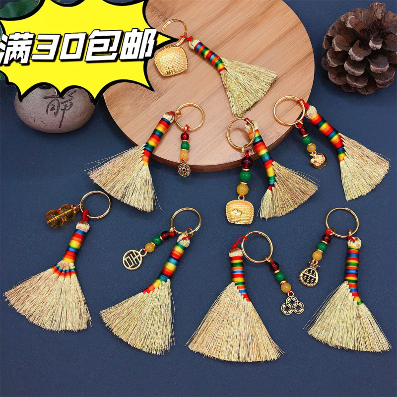 端午節ほうきペンダントほうき手織り金五色糸金色ハンドルクロスボーダー配送