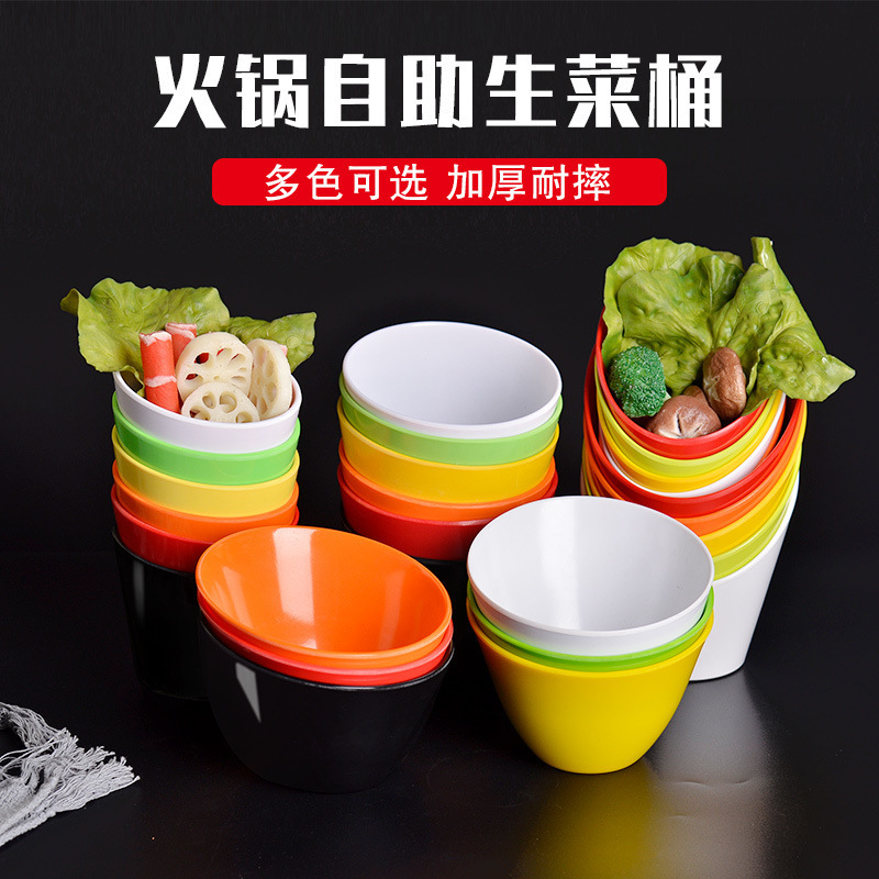 メラミン鍋レストラン野菜レタスバケツ模造磁器斜め口ビュッフェソースボウルレストラン野菜バケツ商業野菜ボウル