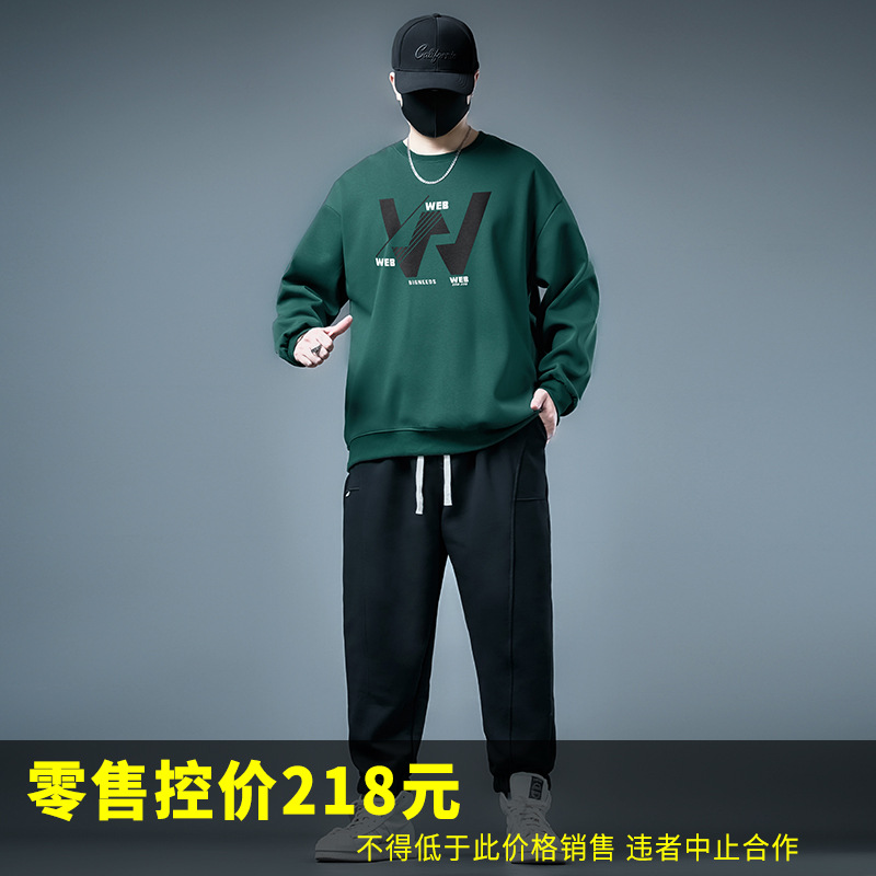 72367-黒ゴムkaフック-204円衛308ズボンセット麦斉維利加肥プラスサイズカジュアルスーツ男