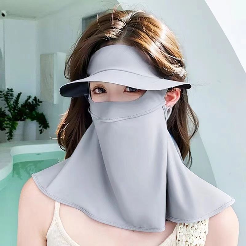 2025新型氷糸紫外線防止首保護一体帽子通気マスク女性夏顔マスク