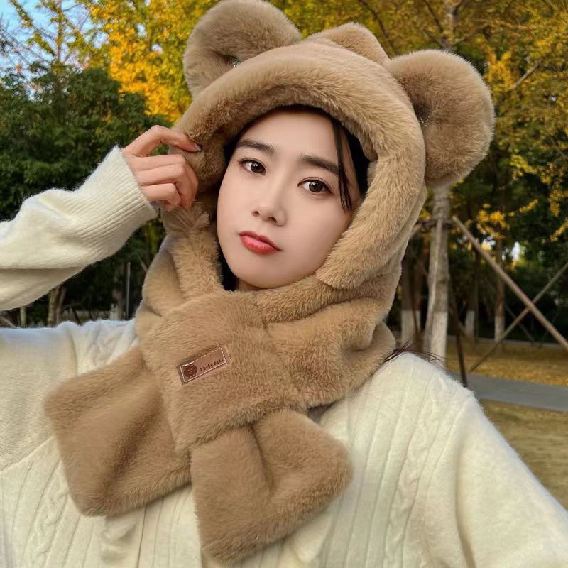 帽子のマフラーのマスクの一体の毛の帽子の子供の冬のぬいぐるみのかわいい熊の耳は首を囲んで防寒して帽子を温めます。