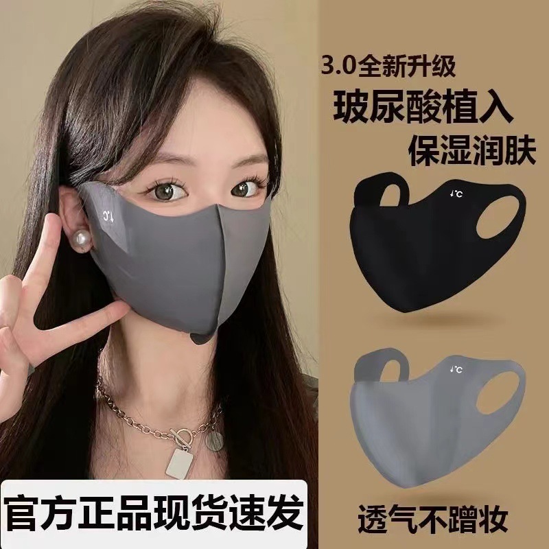 立体的なシームレスUPF50+洗えるヒアルロン酸アイスシルク日焼け止めマスク、女性用、目の保護とUV保護付き