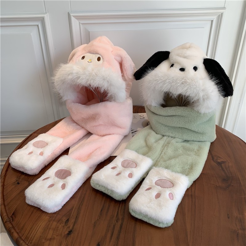 秋冬のかわいいアニメの子犬のぬいぐるみと帽子のマフラーの帽子の子供の新型の保温手袋の帽子のマフラーの一体体
