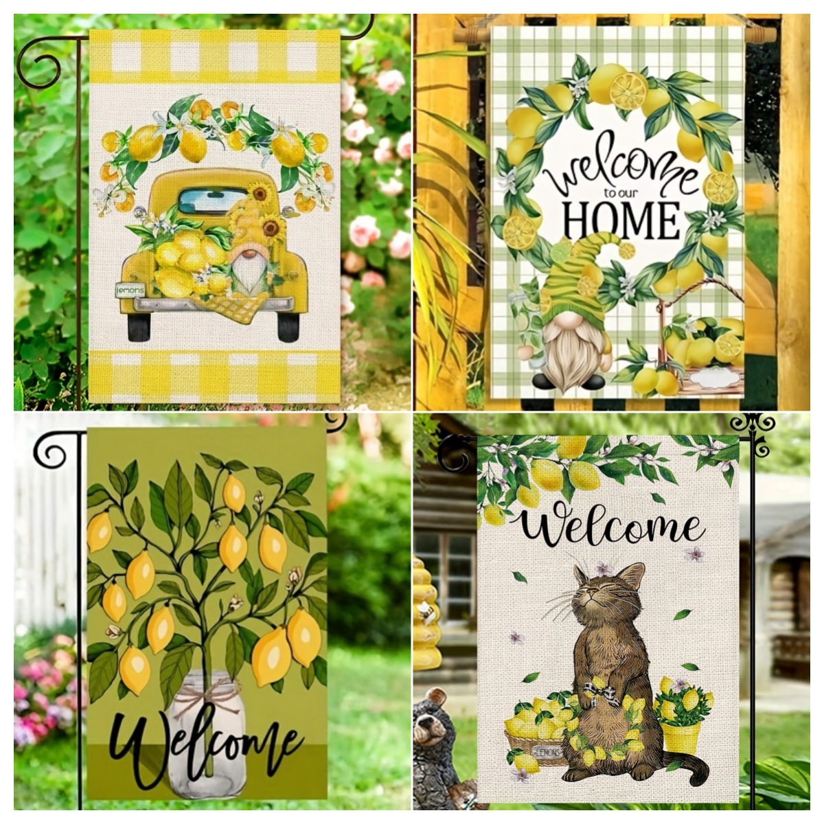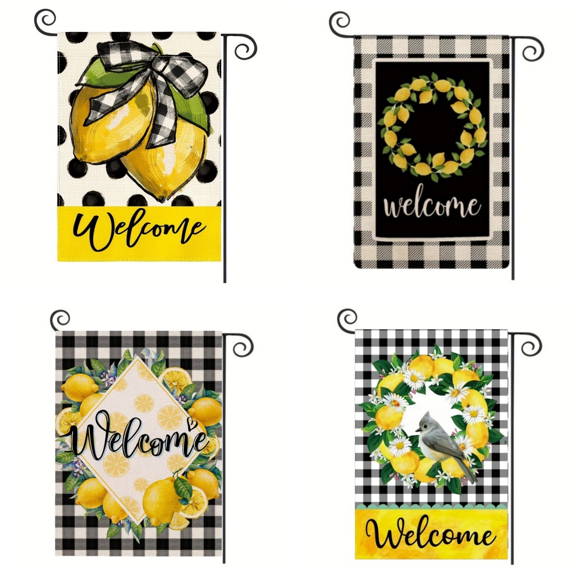 梓誠越境夏花園旗格子レモン花輪花園旗夏歓迎屋外庭園装飾