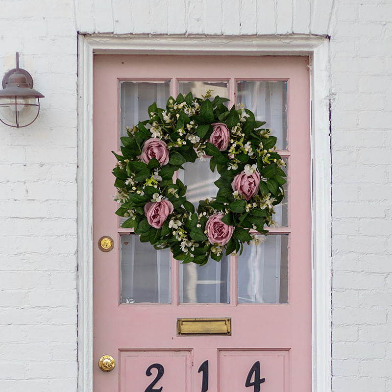 Zichen 春ピンクローズガーランド夏フロントドアガーランドペンダント模擬ガーランドドアリングペンダントフラワーガーランド