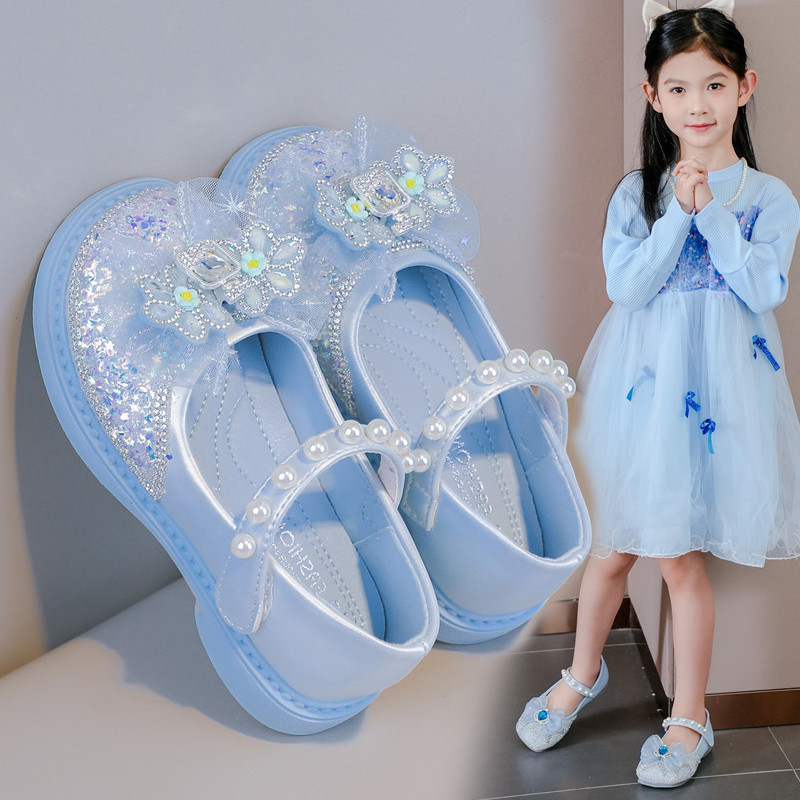 女の子の靴の子供の王女の水晶の靴の春秋2025の新型の柔らかい底の女の子の靴のドリルの女の子は靴を演出します。