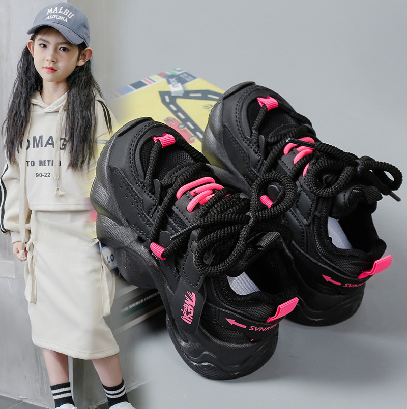 女の子用スポーツシューズ 春秋モデル 2025年新作 子供用ダッドシューズ 中高生向けシューズ 人気 メッシュシューズ 通気性