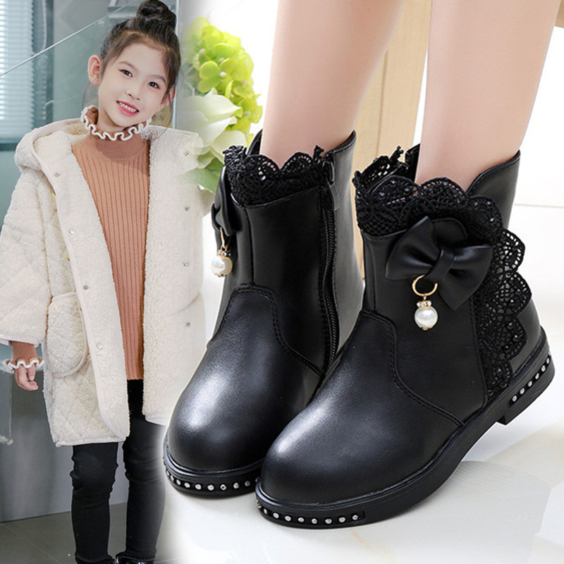 女の子用ブーツ 秋冬2025新作 韓国風プリンセスショートブーツ 子供用スノーブーツ 女の子用裏起毛ミドルブーツ