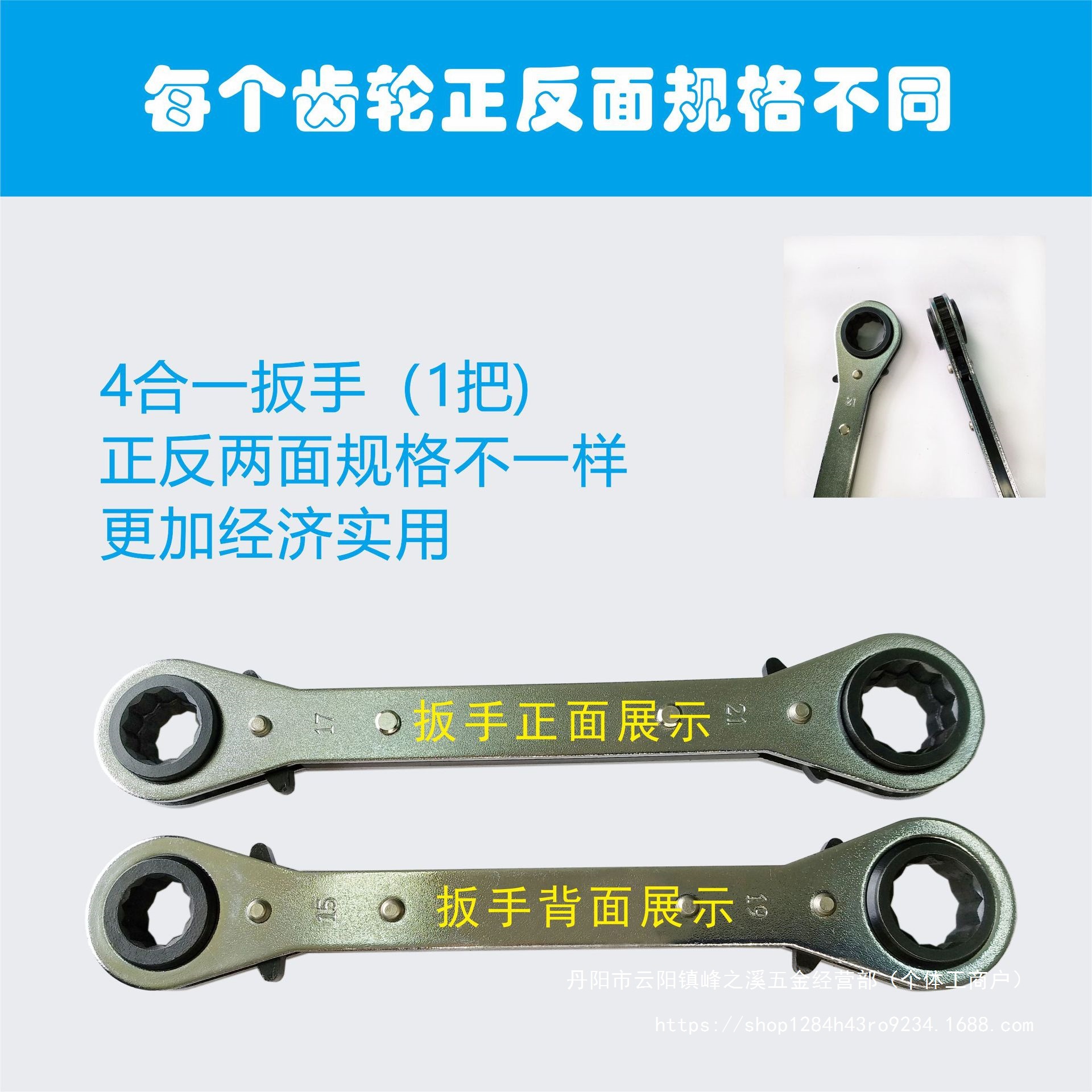 4-in-1 双頭双方向高速ラチェットレンチ ストレートハンドル型 多目的多機能シングルハンドルハンドツール Mingzhirun