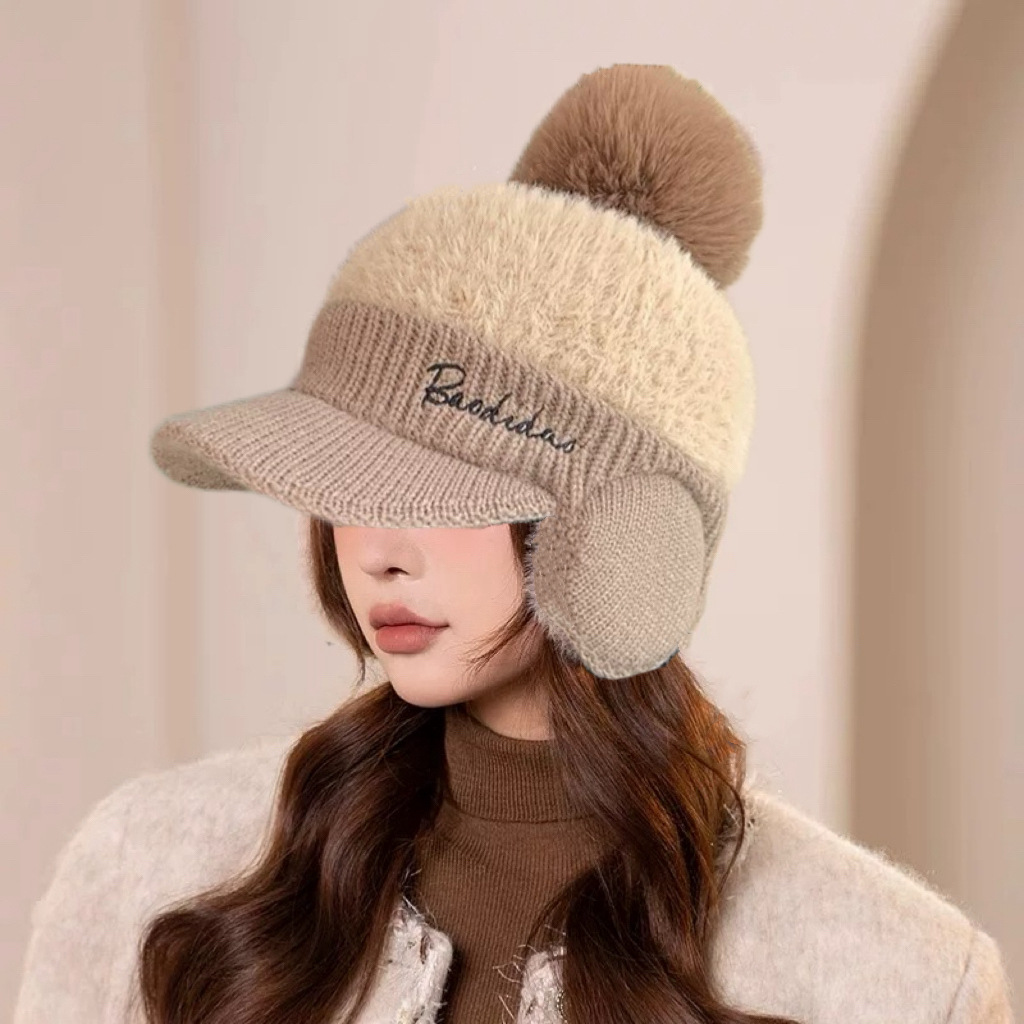 帽子の女性防風耳保護冬保温防雪帽厚いベルベットニット帽防風防寒自転車秋冬金