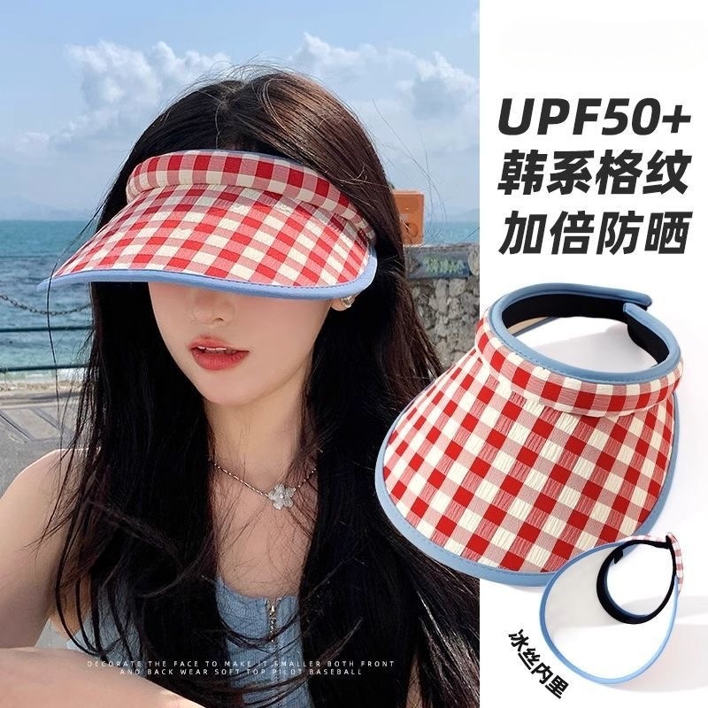 格子空頂日焼け止め帽子女性夏紫外線防止帽子2025新型屋外空頂カチューシャ太陽帽