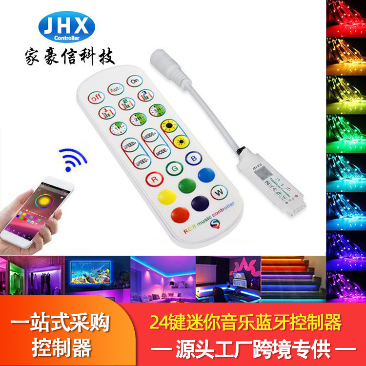 メーカーの豪信ミニ24キーbluetoothコントローラスマート赤外線app七彩ledライト付きストリップコントローラ