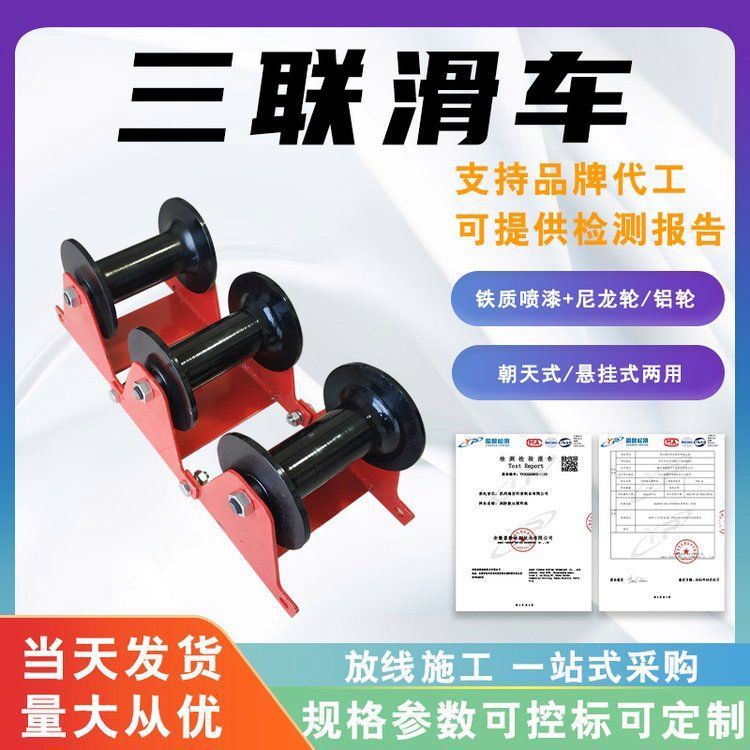 三連滑車、多連ケーブル滑車、ナイロンアースケーブル滑車、多輪井戸口ケーブル保護滑車