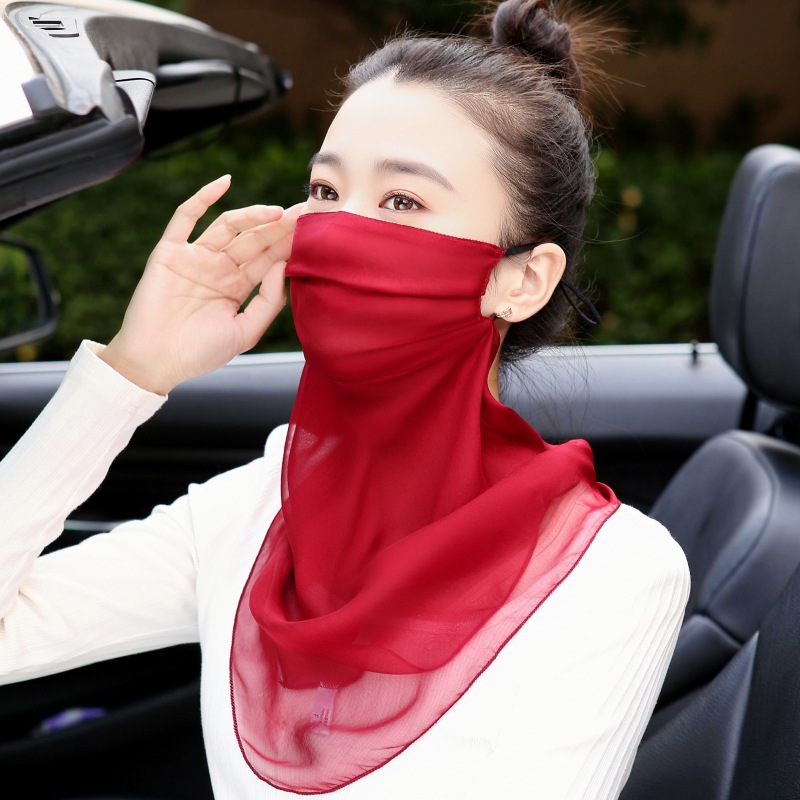 100% 绢糸日焼け止めベールシルクマスクネックガード一体型夏マスク薄手マスクフェイスマスクスカーフショール女性