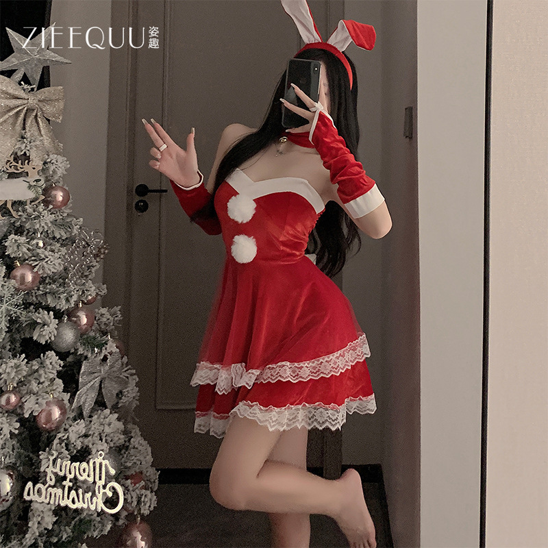 姿趣味秋冬セクシークリスマス服かわいいぬいぐるみバニーガールストラップ趣味下着修身制服セット6219