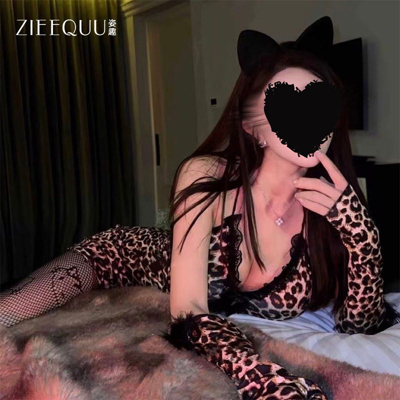 セクシーなセクシーな下着の純粋な欲のかわいい豹の紋様はヒップのスカートの制服のスーツを包みます。