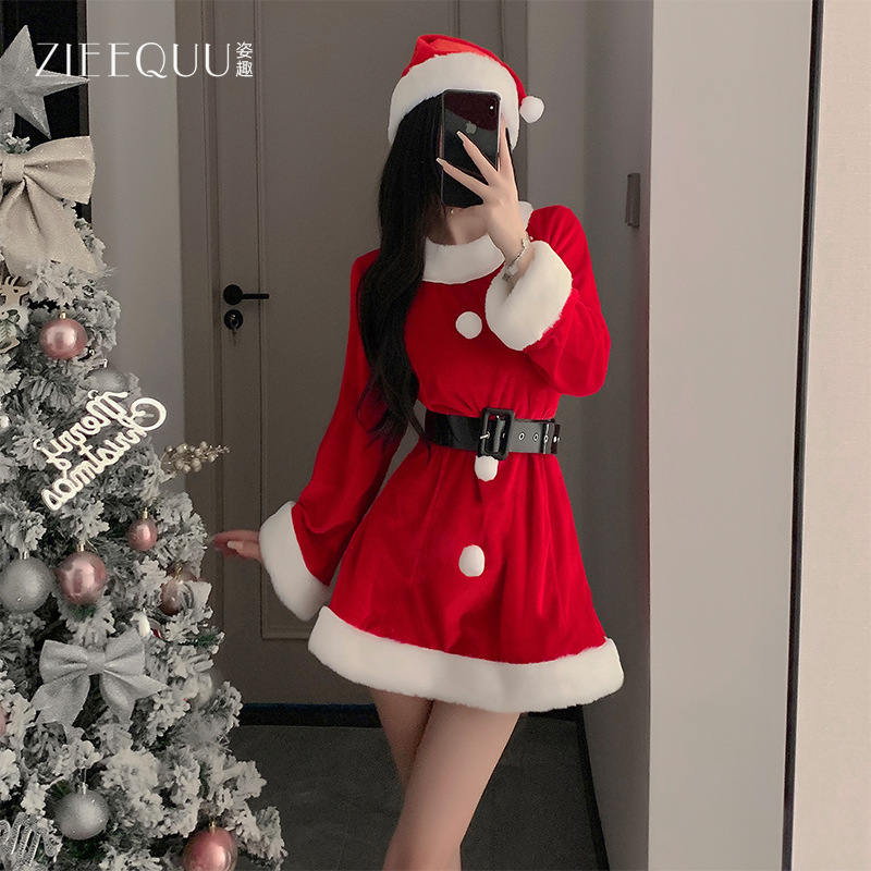姿趣味クリスマス服修身セクシーストラップ趣味下着女性新年ベルベット制服セット代理卸売り6218