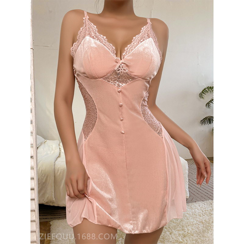 セクシーなサスペンダーナイトガウン、快適な胸パッド付きレースの下着、女性用ホームウェアセット、欧米向け越境貿易6212