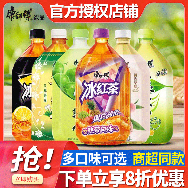 康師傅アイスティー1l * 12本の箱全体の大瓶緑茶ジャスミン茶柚茶清茶無糖茶飲料