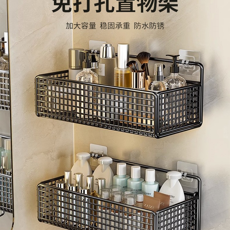 バスルーム収納ラックキッチン壁掛け寮ベッドサイドハンギングバスケットバスルームパンチフリーウォール収納ラック