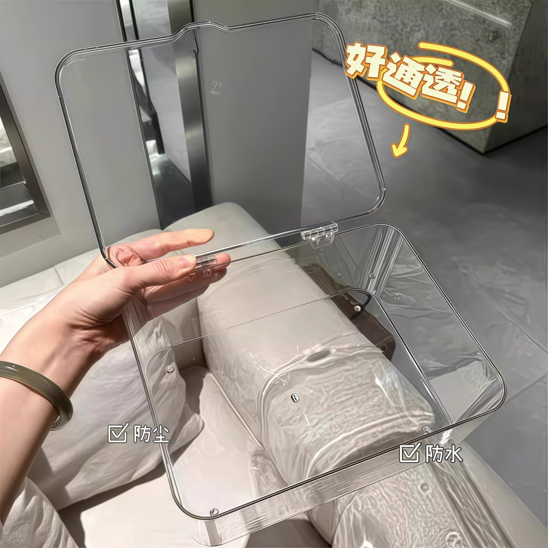 デスクトップ収納ボックス透明アクリル雑貨バスケットオフィス寝室寮防塵整理ボックス蓋付き
