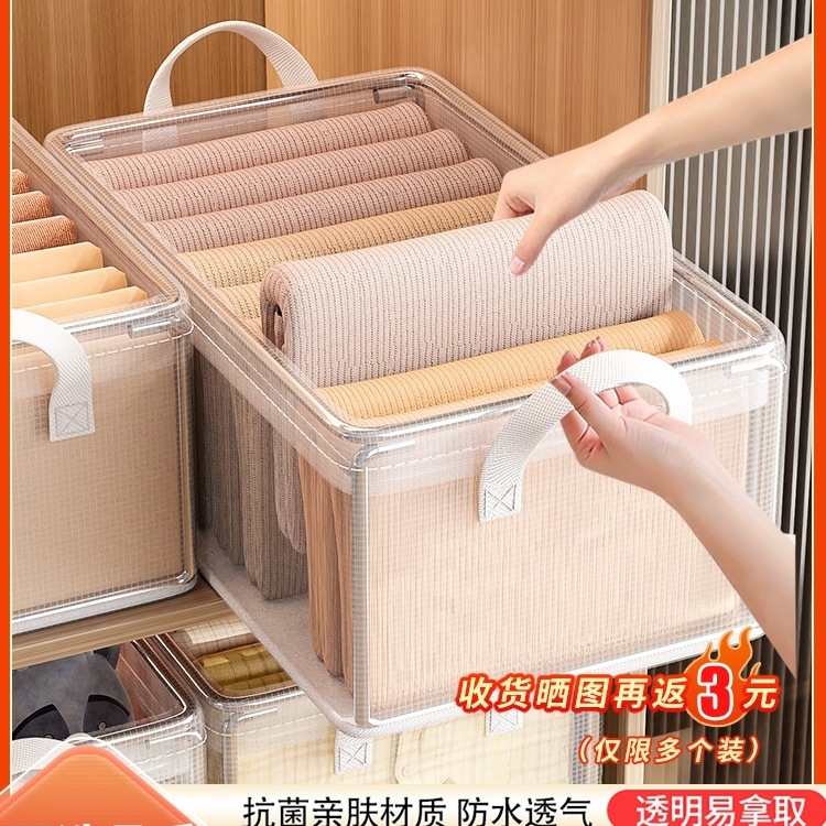 衣類収納ボックス、家庭用ワードローブ、衣類やズボン用の層状整理ボックス、透明な折りたたみ式収納バスケットフレーム
