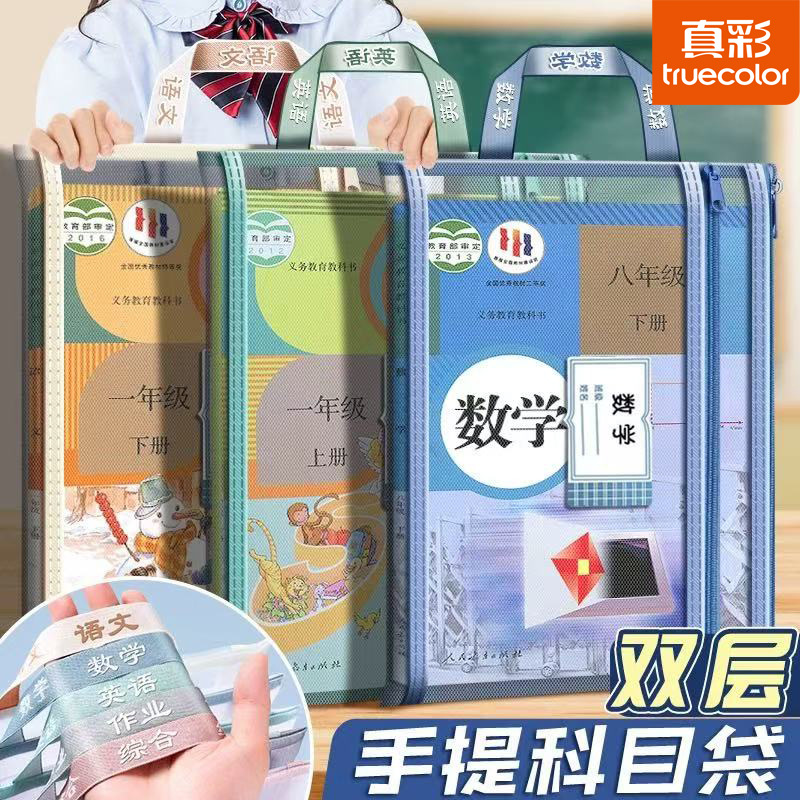 科目科目分類ファイルバッグ ジッパー付き二層試験バッグ 小学生向け情報書 教科書 教科書