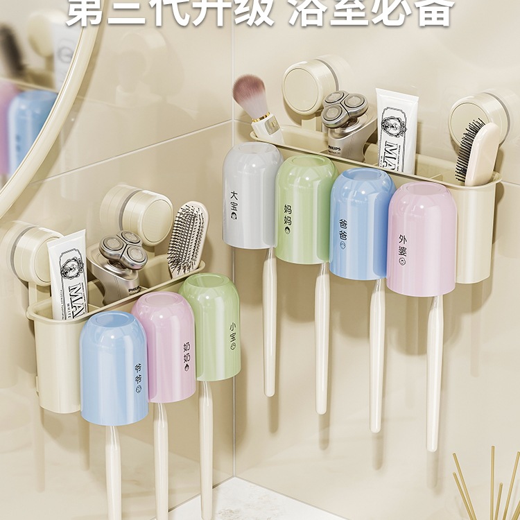 吸盤歯ブラシ収納ラック壁掛けパンチフリーバスルーム歯磨きカップマウスウォッシュカップ歯磨き粉ラック