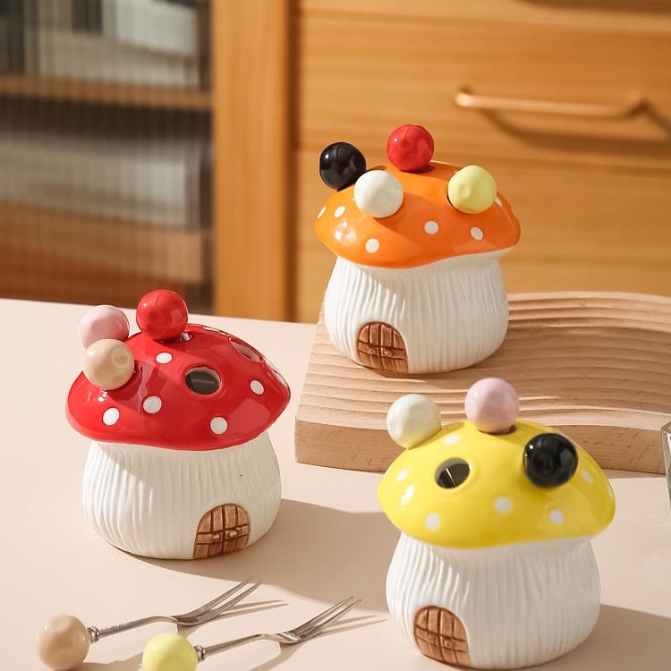 キノコハウスフルーツフォークセットステンレス鋼デザートかわいい小さなフォーク保存瓶家庭用フルーツインサート子供用フルーツピック