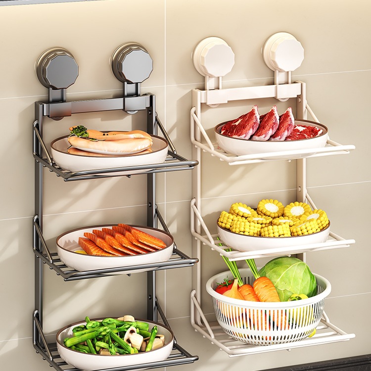 吸盤キッチン食品準備ラック折りたたみ多層ディッシュプレート食品準備ラック多機能ディッシュプレート収納ラック
