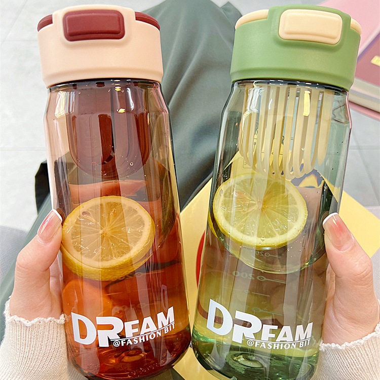简约清新水杯男女士高颜值带茶隔耐高温塑料杯学生运动便携随手杯