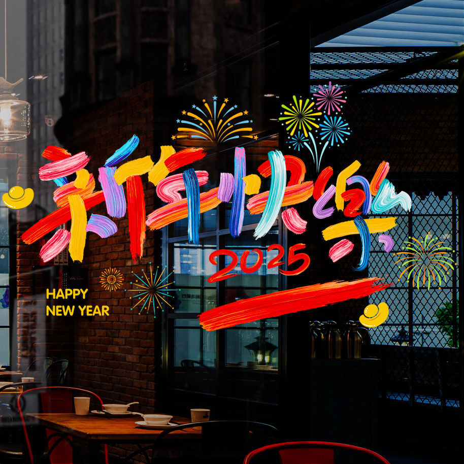 新しい 2025 新年あけましておめでとうございますガラス静電ステッカー蛇年教室ショッピングモールレイアウト窓ドア新年装飾ステッカー