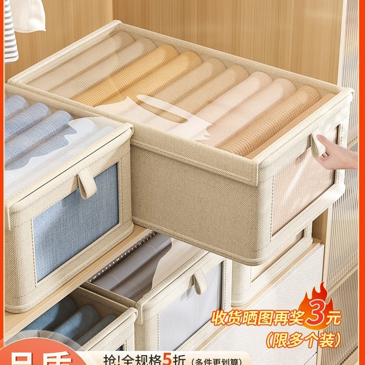 蓋付き衣類収納ボックス、衣類やズボン用の家庭用ワードローブ層状整理ボックス、布製折りたたみ収納バスケット