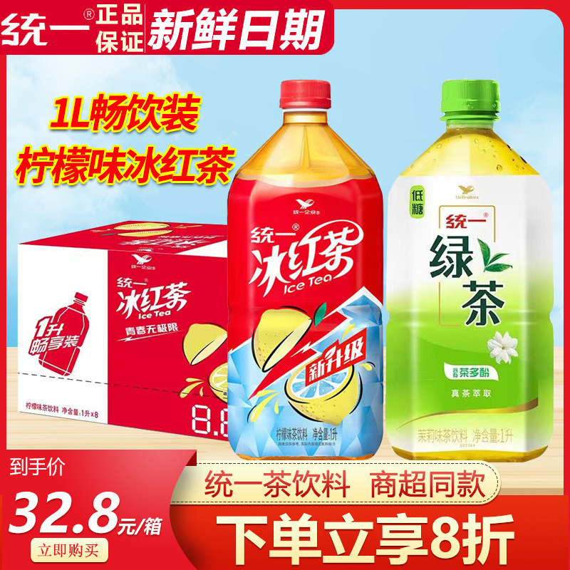 統一氷紅茶レモン風味茶飲料 1L*8本フルボックスバッチ特別価格低糖質大型ボトル夏の冷たい飲み物