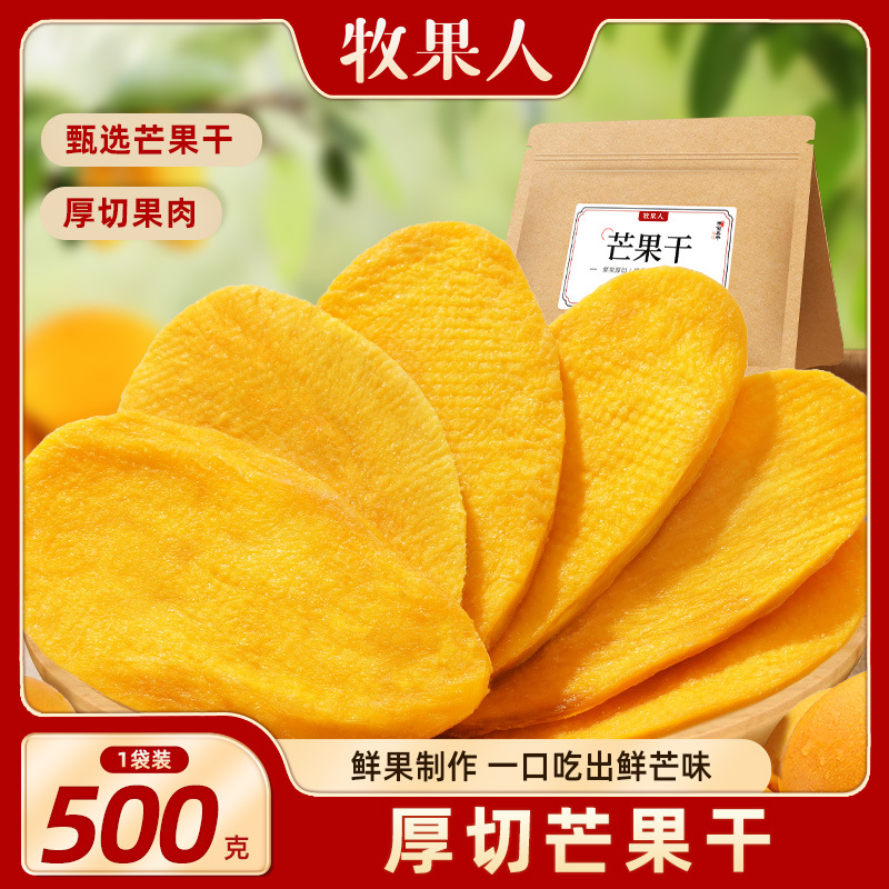 牧果人包梅好芒果乾大厚切500g果物乾果層事務室レジャースナック