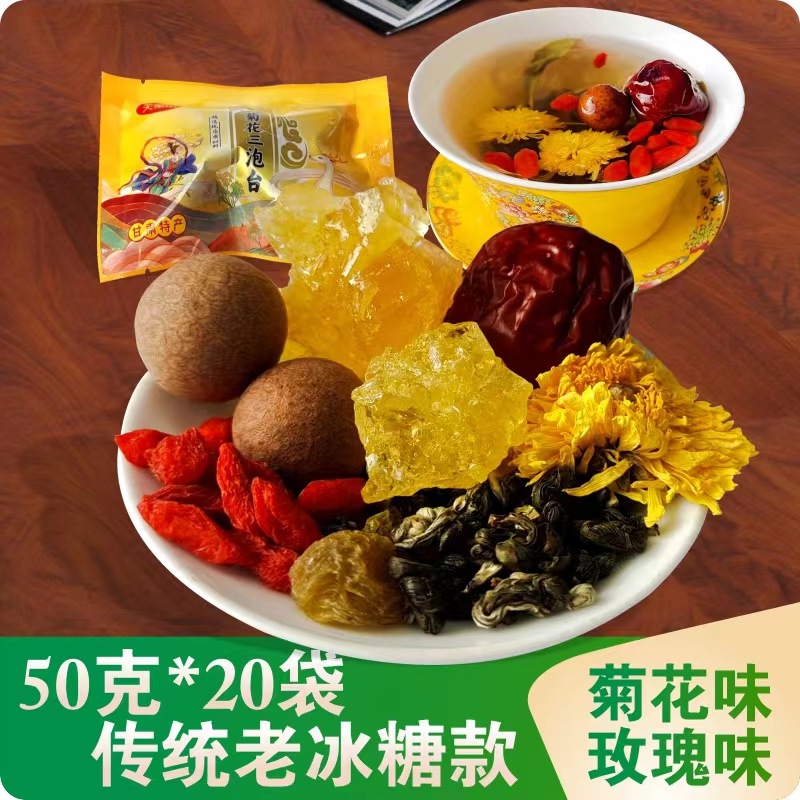 20袋三泡台茶蘭州茶三砲台甘粛特産菊缶茶薔薇蓋茶老氷糖