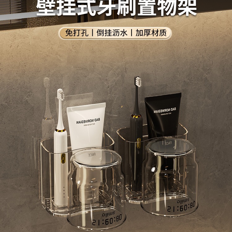 歯ブラシラック、パンチフリーのマウスウォッシュカップ、歯磨きカップ、浴室壁掛け家庭用電動歯磨き粉ラック、洗濯
