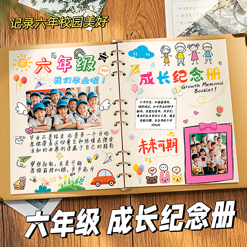 クリエイティブハンドブック DIY 成長記念アルバム 小学 6 年生卒業記録ハンドブック 空白のルーズリーフフォトアルバム