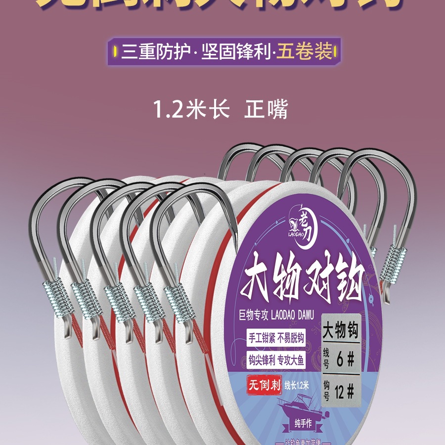 巨大な無刺釣り針、完成したサブラインダブルフック、大型フック、チョウザメ、スズキ、イセニペアフック