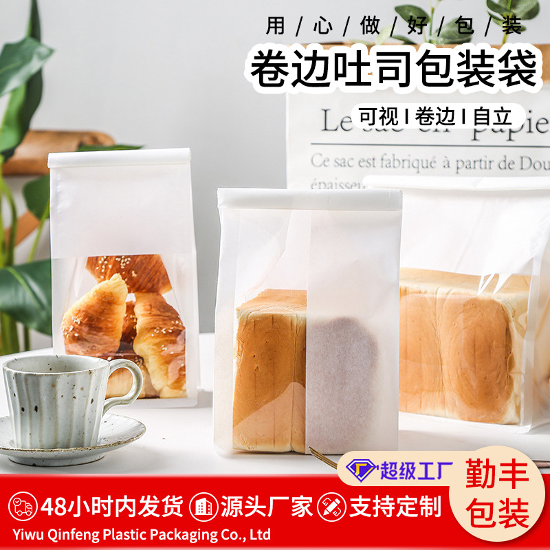 ベーキングトースト袋自封口生トースト包装袋カール針金封口パン袋透明開窓綿紙袋