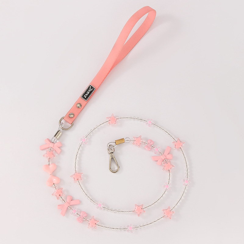 Zhousファッションプリンセス風ペット水晶牽引ベルトabs断裂防止小型猫犬ビーズ牽引ロープ