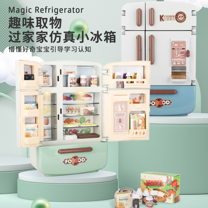 ミニチュア食品玩具キッチンシミュレーション冷蔵庫玩具キッチン食器セットランプ付き音女の子誕生日プレゼント