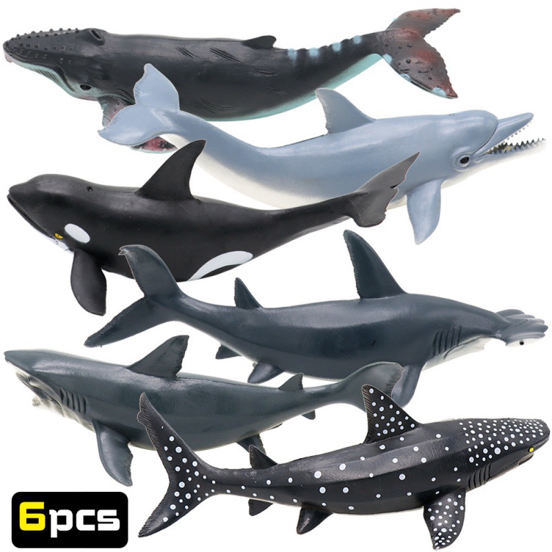 クロスボーダー爆発シミュレーション超大型サメ玩具8インチ海洋生物模型6匹のプラスチック玩具イルカセット