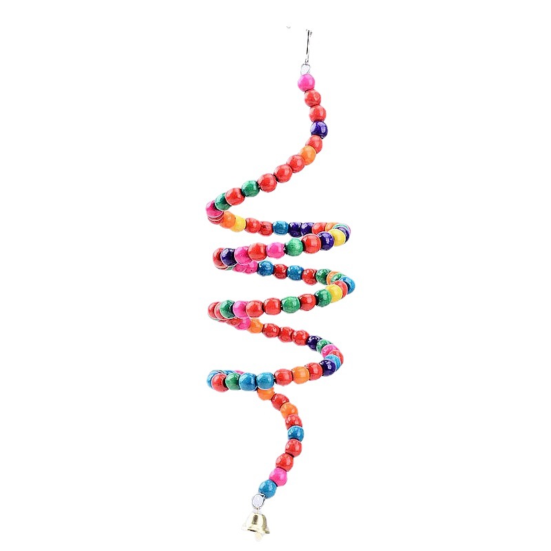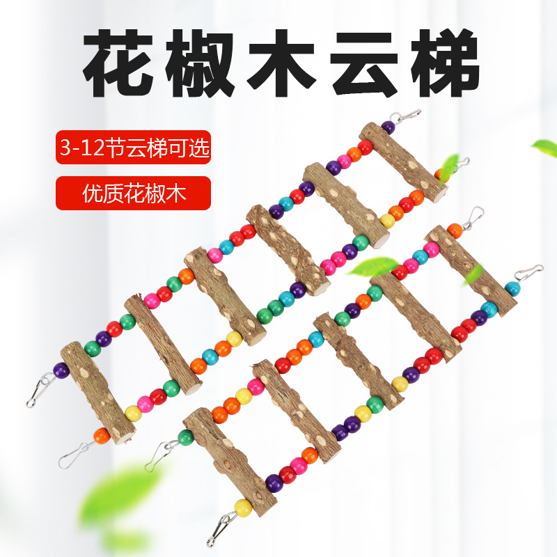 虎皮オウムのおもちゃはロープのはしごの木のはしごを登ります。
